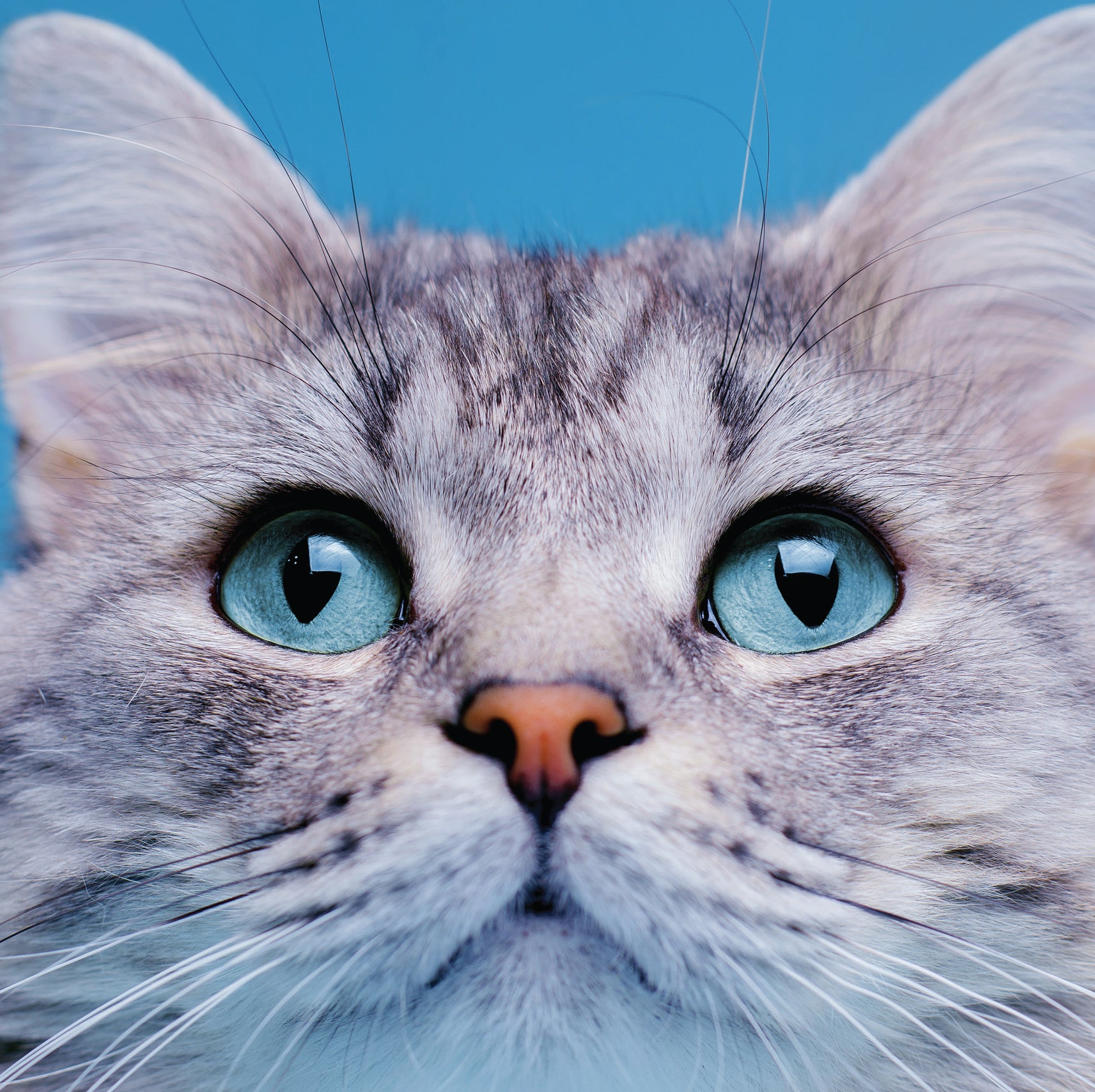 This card features a stunning grey cat with amazing blue eyes.
