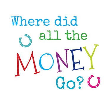 This colourful card says Where did all the money go along with horse shoe illustrations on a white background. Inside says Oops I'm riding it... Happy Birthday and it is the perfect card for you to send to an horse lover on their birthday.