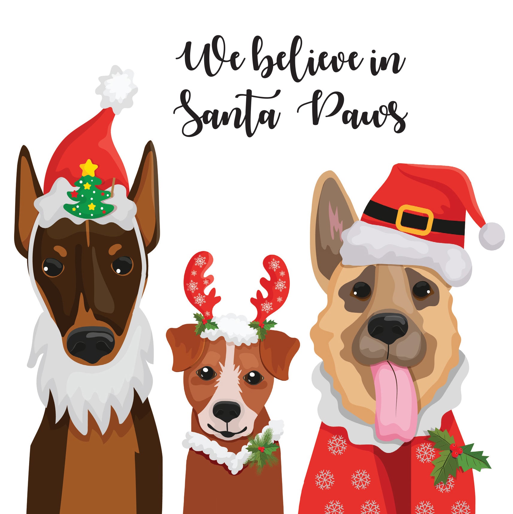 This Christmas card features three happy dogs who Believe in Santa Paws whilst wearing novelty hats and white fur garlands around their necks - all trimmed with sprigs of holly. Each card has a festive banner along the top of the inside of the card. This card is sure to impress any cat lover.